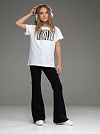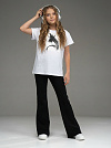 Костюм двойка для девочки из футера белого цвета для девочки состоит из футболки свободного силуэта со спущенной линией плеча, рукавами до уровня локтя и брюк- клеш. На груди футболки- яркий анималистичный принт. Костюм двойка- это отличный выбор для создания модного и стильного летнего образа. Превосходное сочетание практичности и удобства, этот костюм станет незаменимым элементом гардероба Вашей девочки. Привлекательный, летний дизайн и свободная посадка обеспечивают комфорт даже в самые жаркие дни.