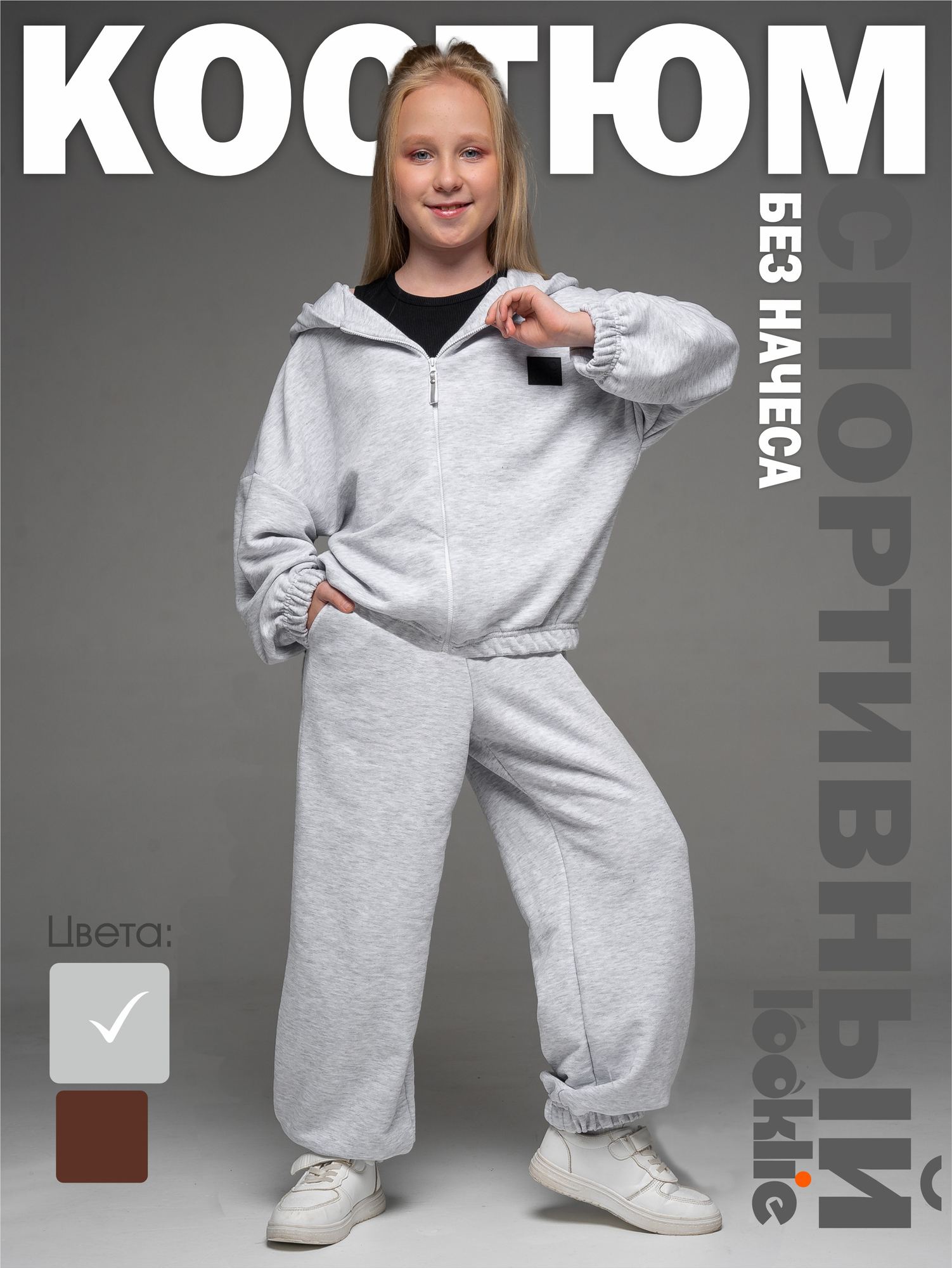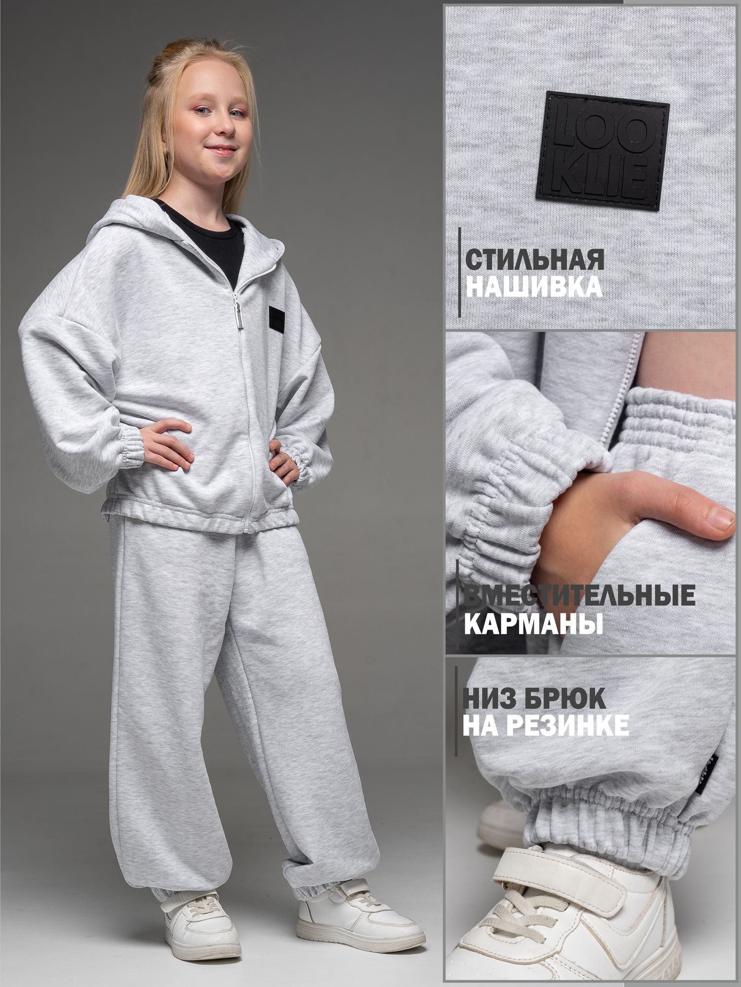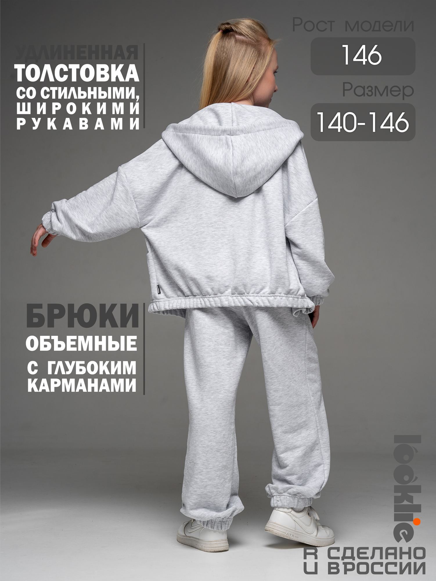 Спортивный костюм из футера(3х нитка) серого цвета для девочки свободного силуэта - идеальный выбор для активного отдыха и занятий спортом!