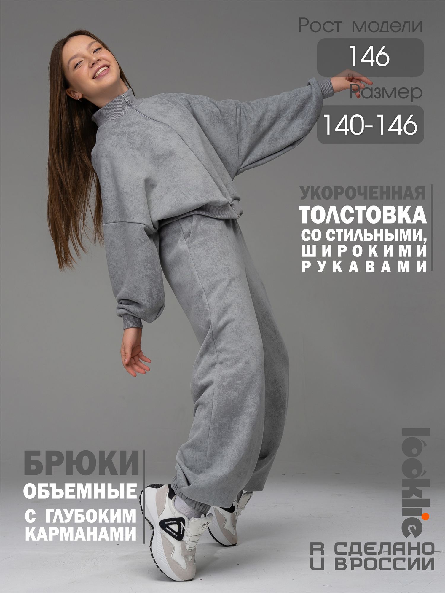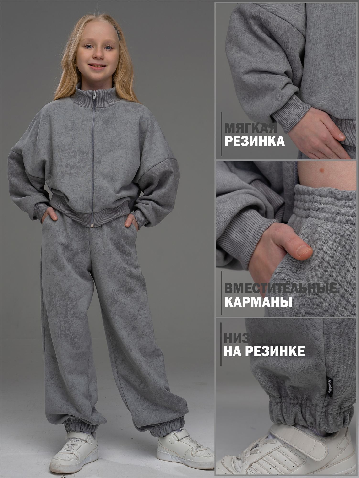 Костюм из футера варенки серого цвета для девочки. От российского производителя "Looklie". Спортивный костюм выполнен из дышащего хлопкового футера 3-х нитки премиального качества Пенье, с содержанием хлопка более 95%. Детский костюм состоит из: толстовки на молнии с длинными рукавами и свободных брюк. На брюках имеются удобные карманы в боковых швах, а пояс штанов на мягкой эластичной резинке, которая не будет передавливать животик ребенка. Низ детских брюк собран на резинку. Толстовка свободного силуэта с объемными рукавами на манжете создает ощущение комфорта и легкости. Кофта для девочки имеет молнию, что делает её удобной в носке и подходящей на любую погоду. Манжеты на рукавах обеспечивают надежное прилегание и защищают от проникновения ветра. Ткань костюма не садится после стирки, не покрывается катышками. В нашем костюме Ваш ребенок будет выглядеть стильно, он позволит ему проявить свою энергию и самовыражение.