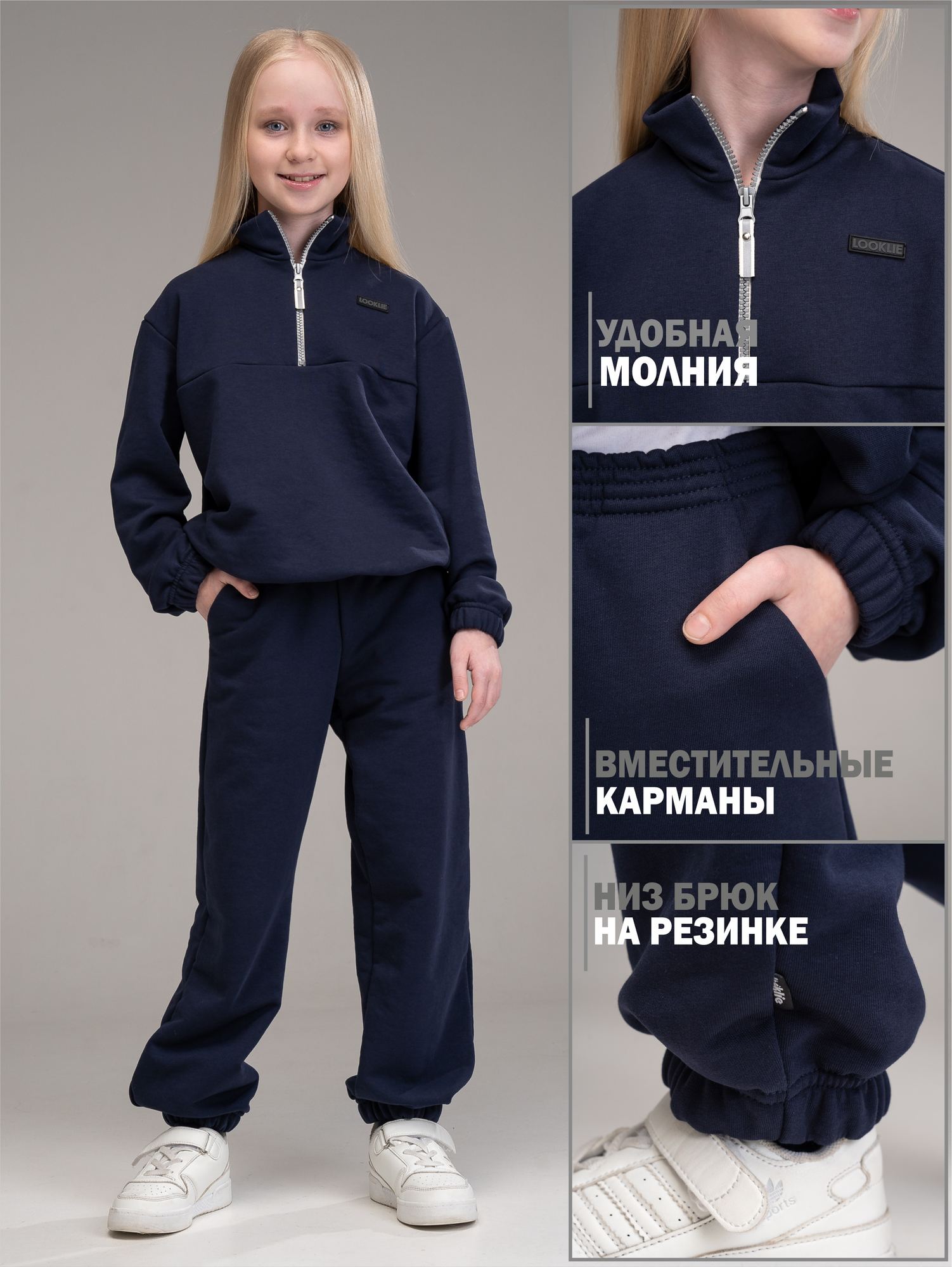 Спортивный костюм из футера(3х нитка) темно-синего цвета - идеальный выбор для активного отдыха и занятий спортом!
