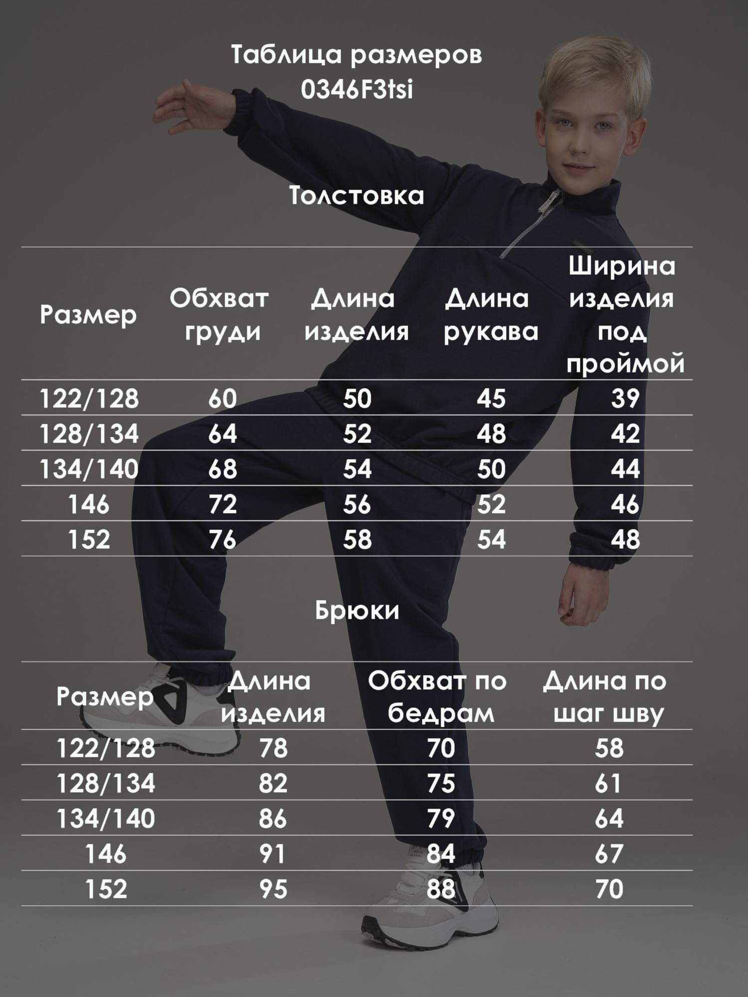 Этот спортивный костюм для подростка мальчика подойдет как для лета, так и для весны. Легкая толстовка с воротником-стойкой и длинными рукавами на резинке обеспечит комфорт в прохладные дни, а брюки-джоггеры с карманами в боковых швах дополнят образ и обеспечат свободу движения.