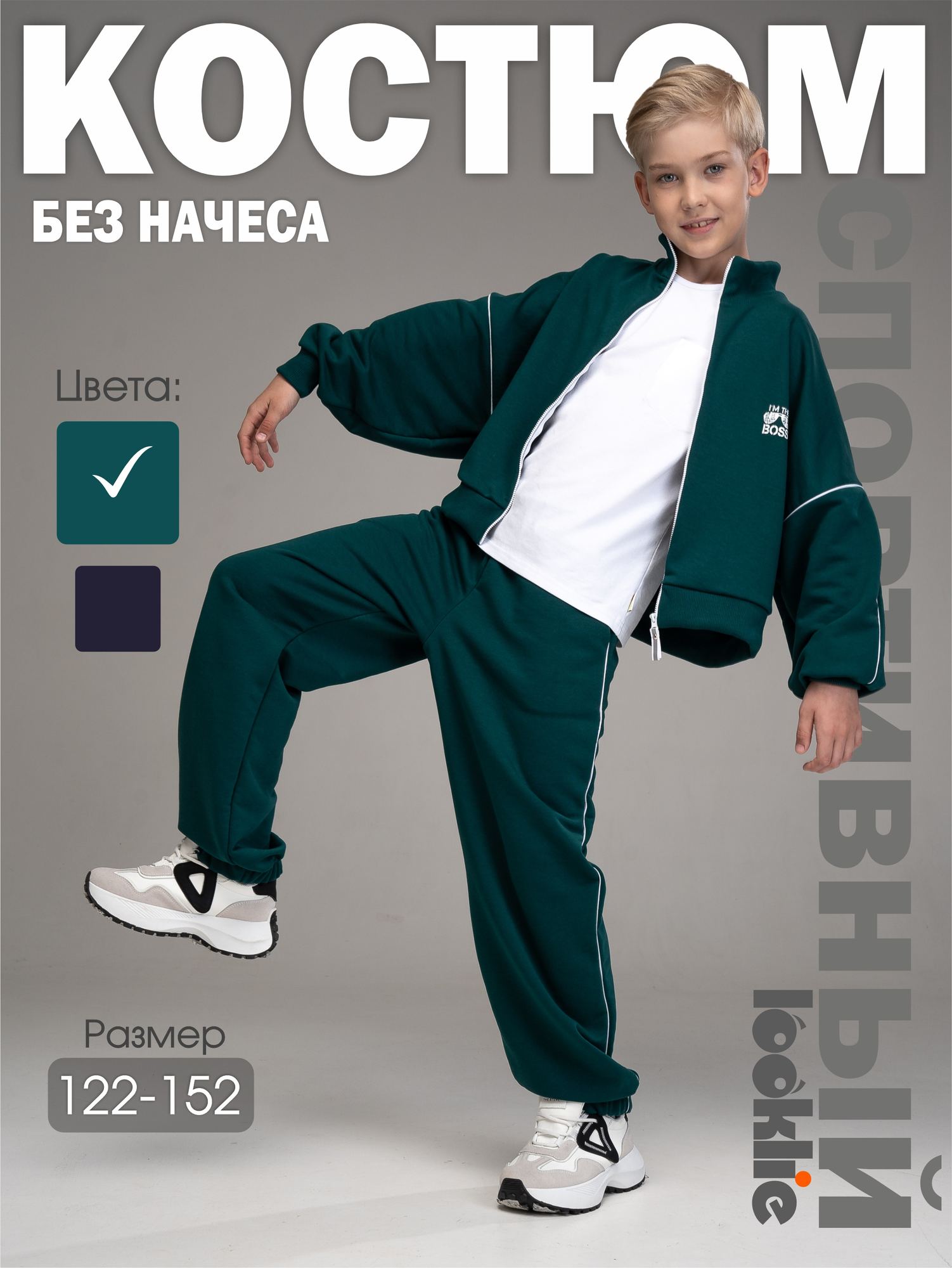 Спортивный костюм из футера изумрудного цвета свободного силуэта - идеальный выбор для активного отдыха и занятий спортом!