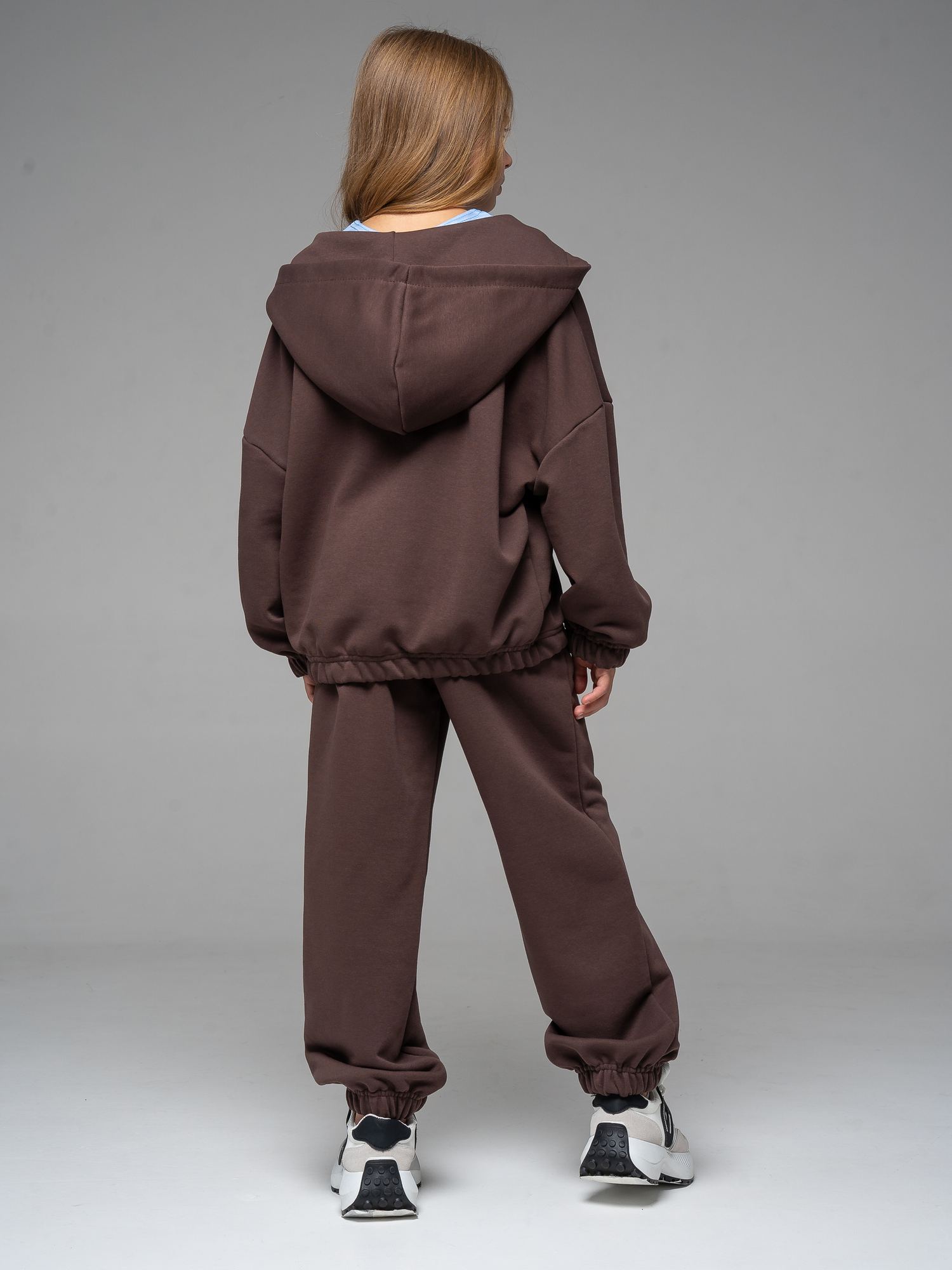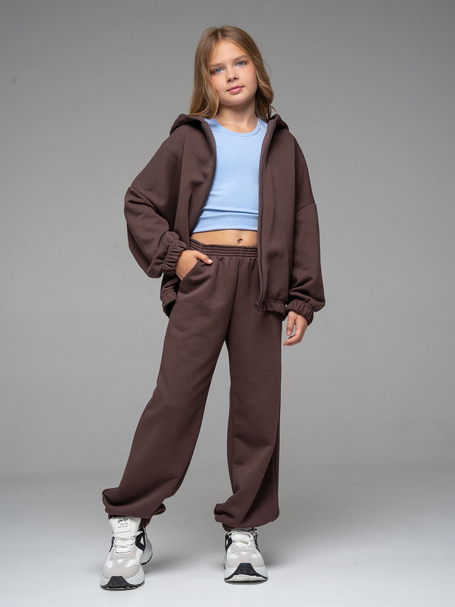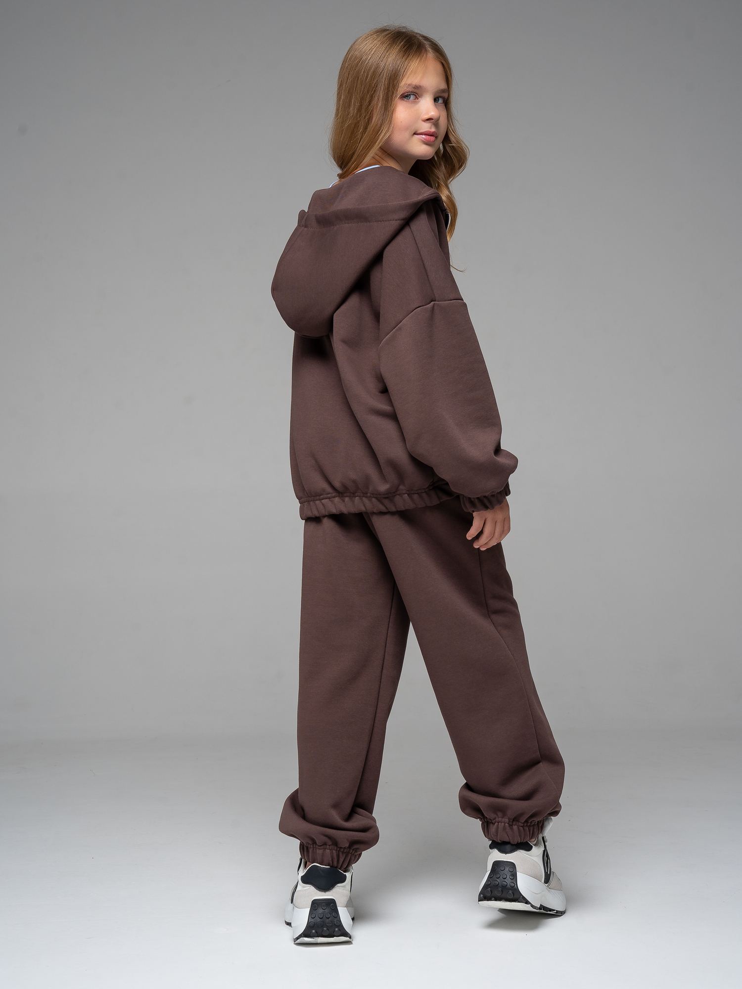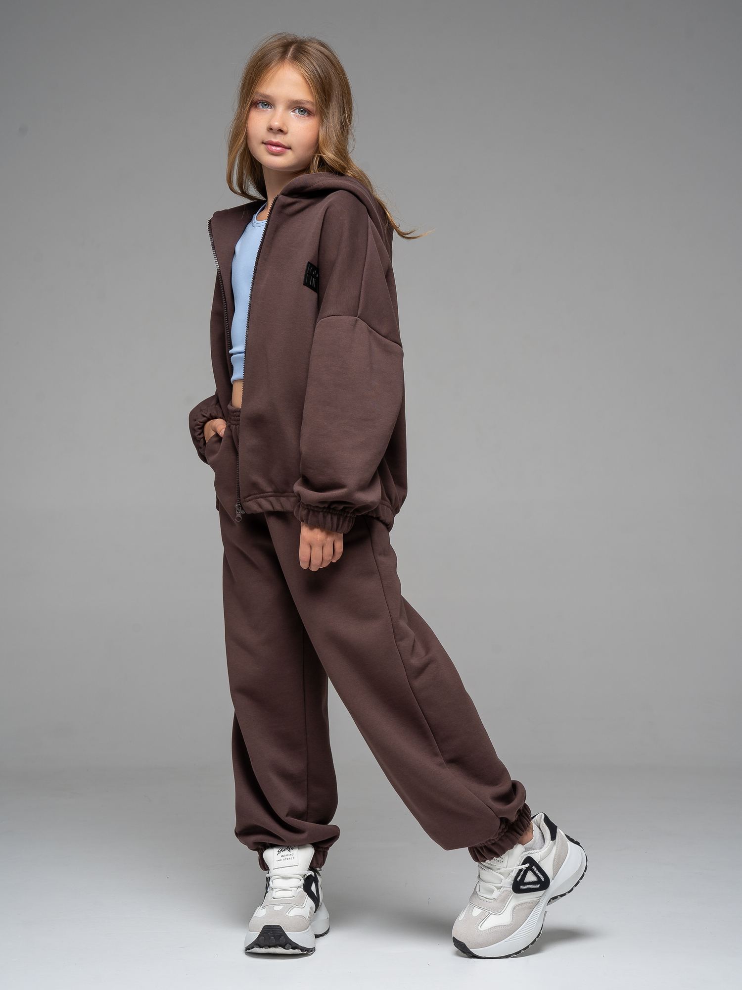 Спортивный костюм из футера(3х нитка) коричневого цвета для девочки свободного силуэта - идеальный выбор для активного отдыха и занятий спортом!