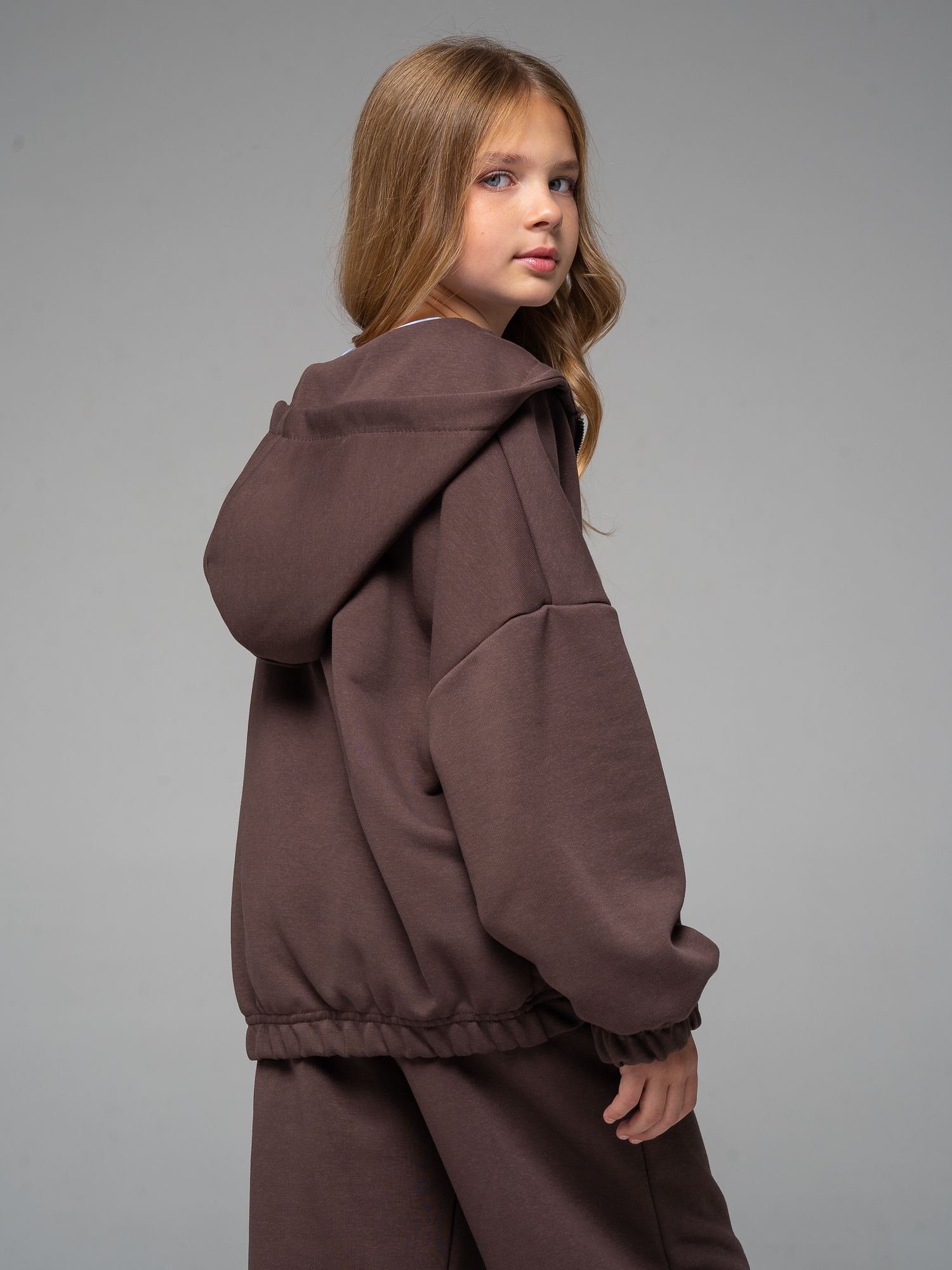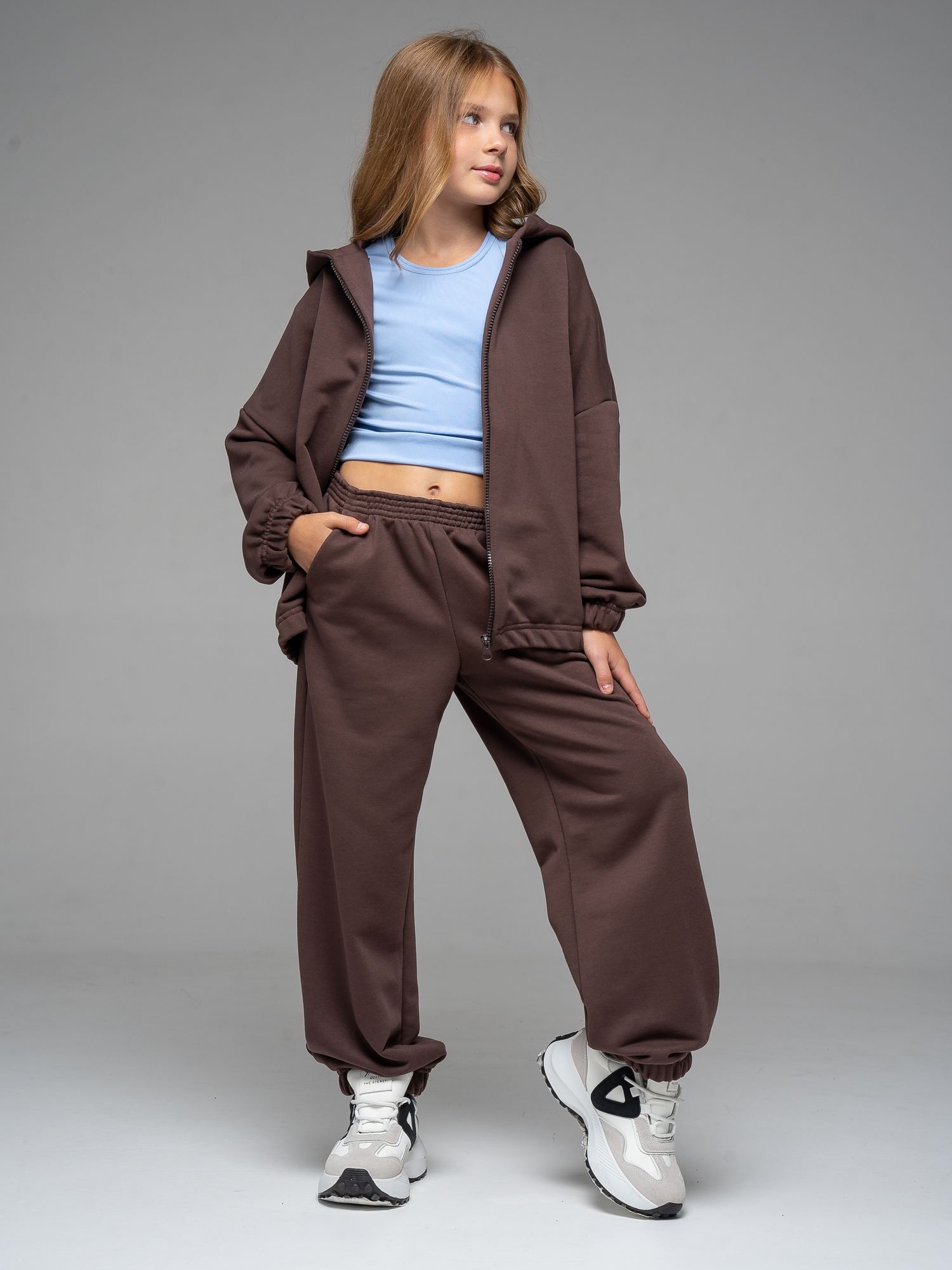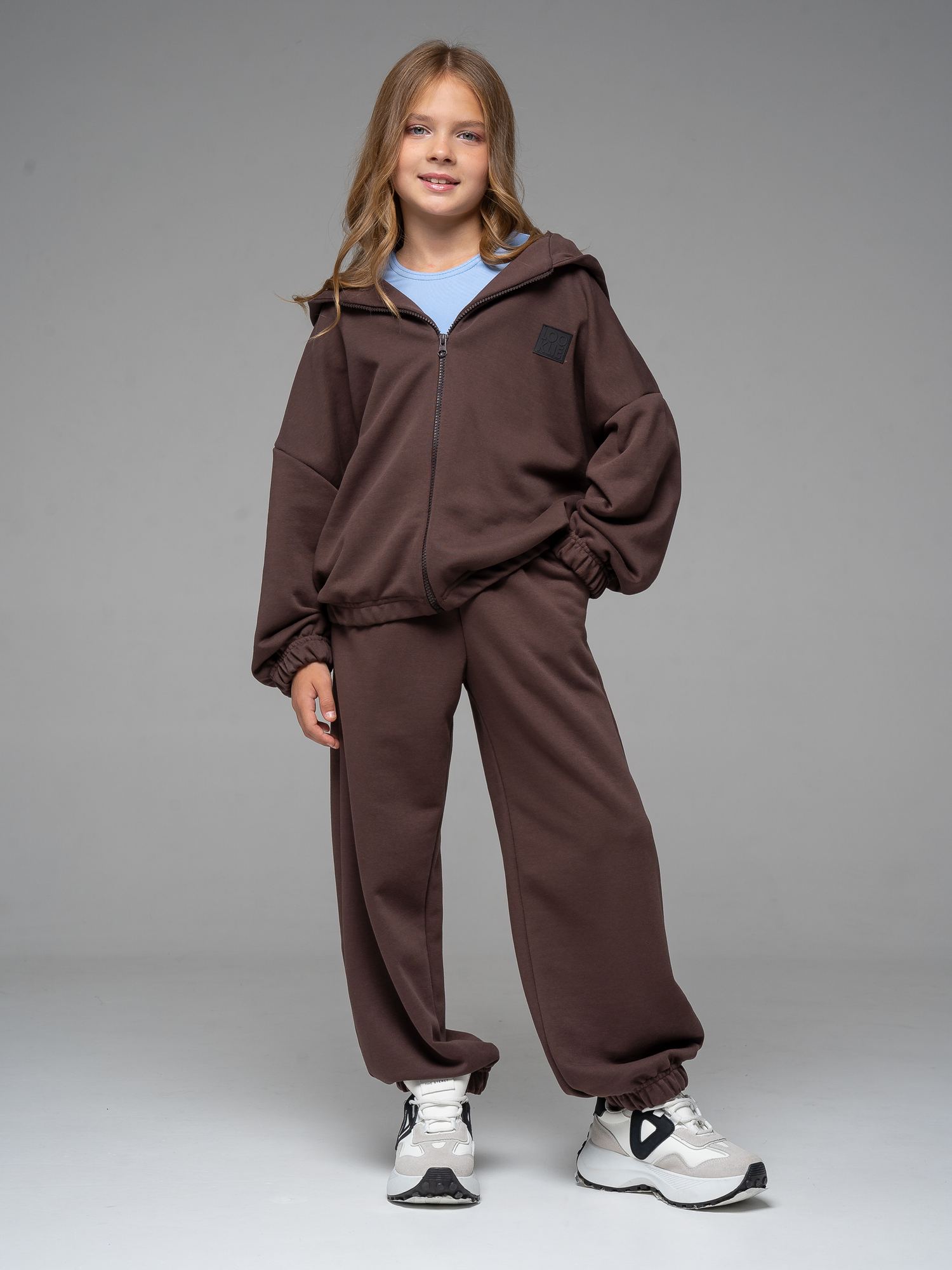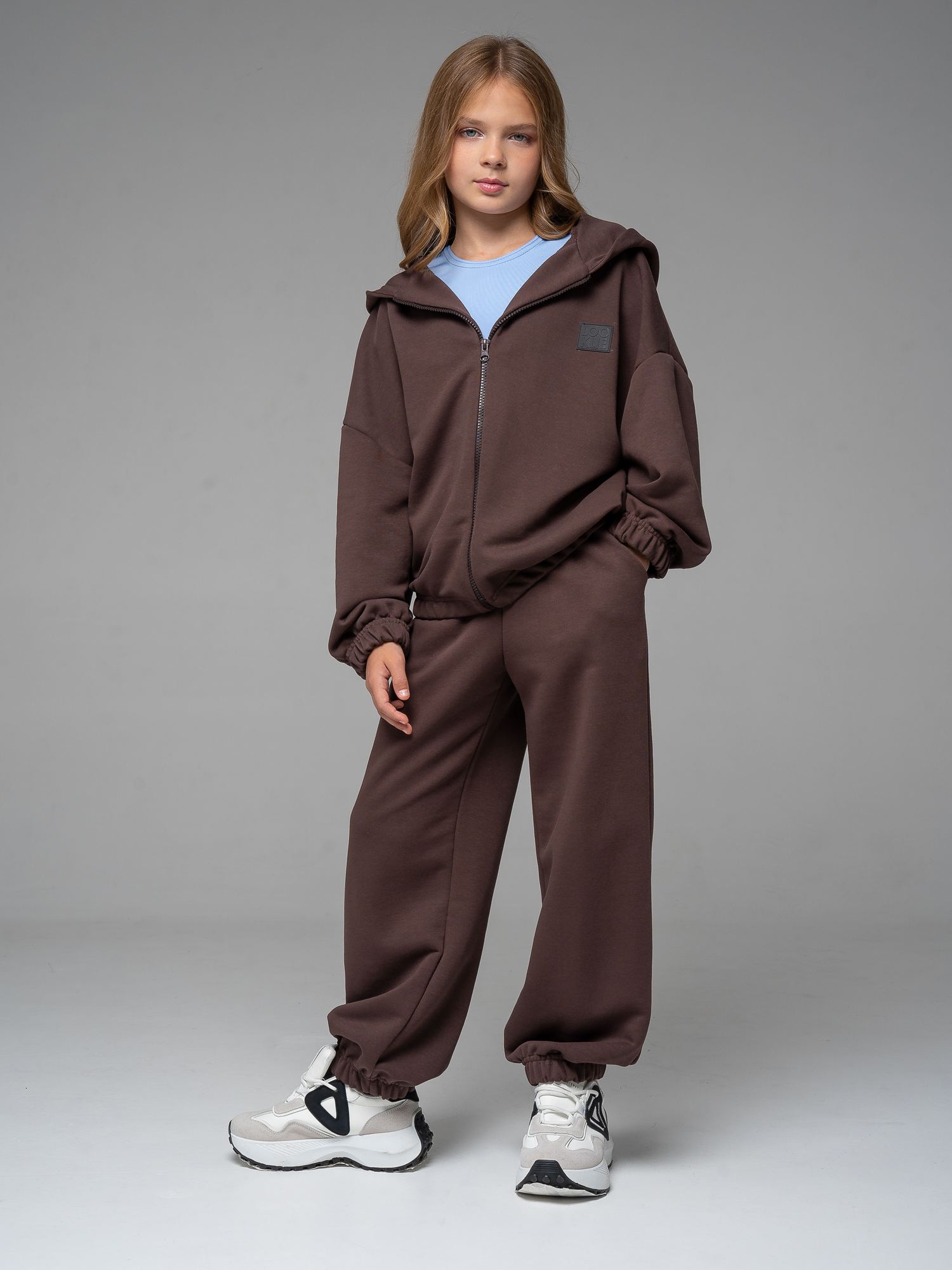 Спортивный костюм из футера(3х нитка) коричневого цвета для девочки свободного силуэта - идеальный выбор для активного отдыха и занятий спортом!