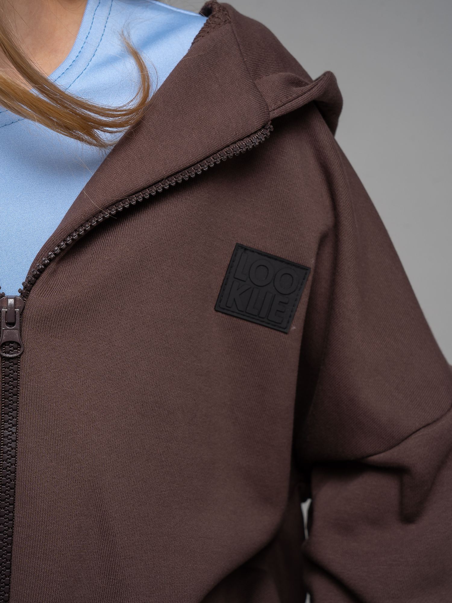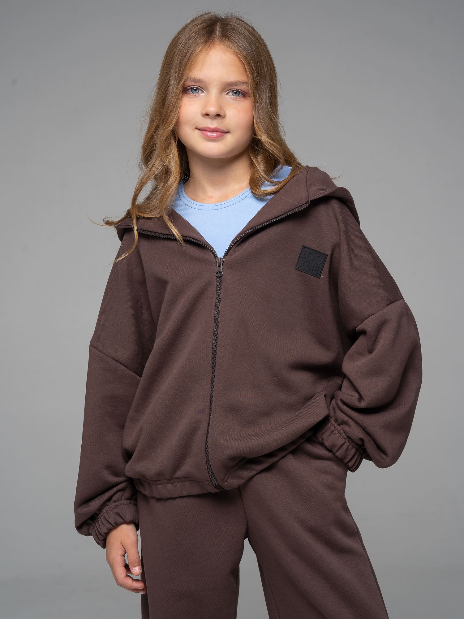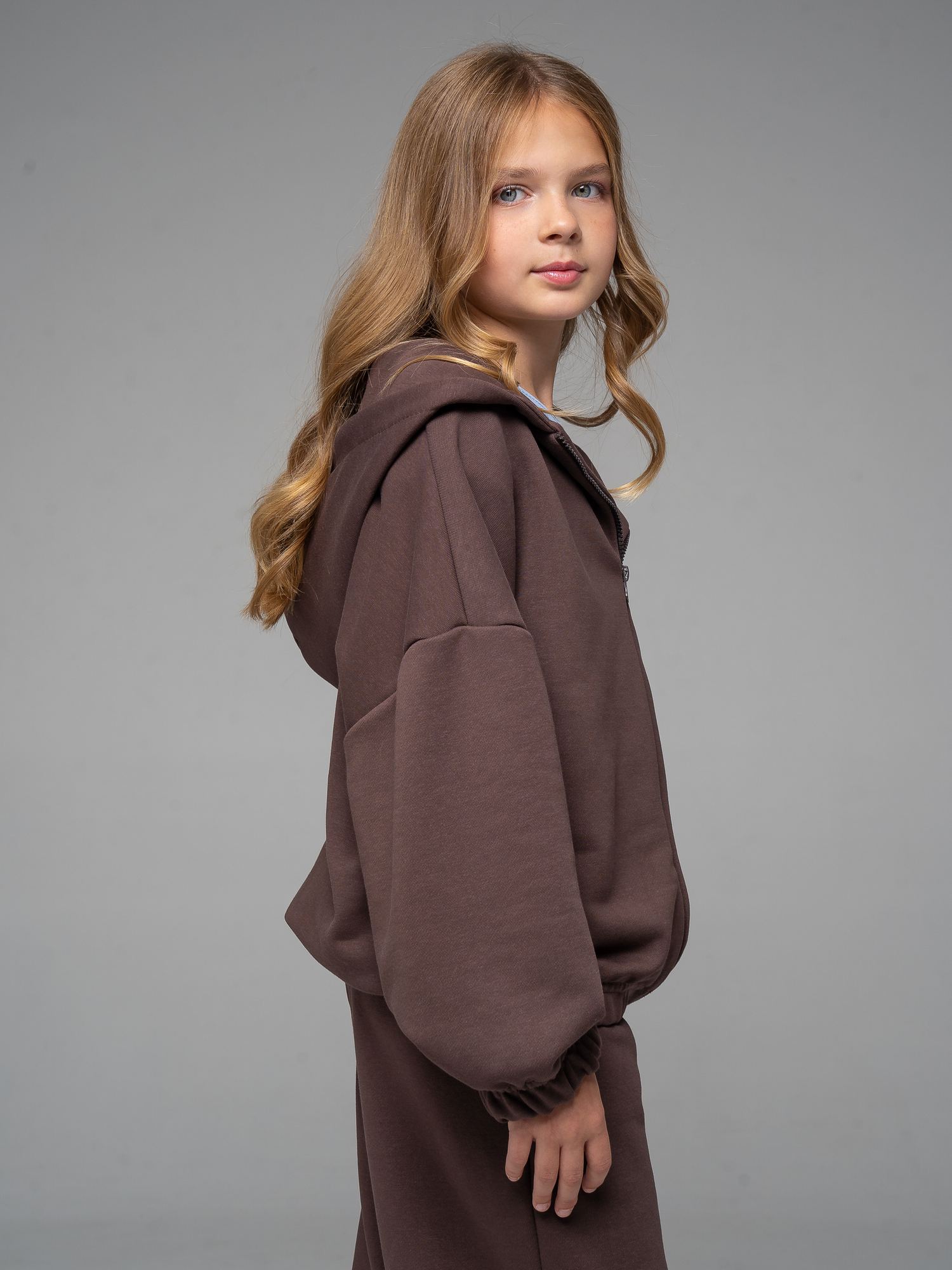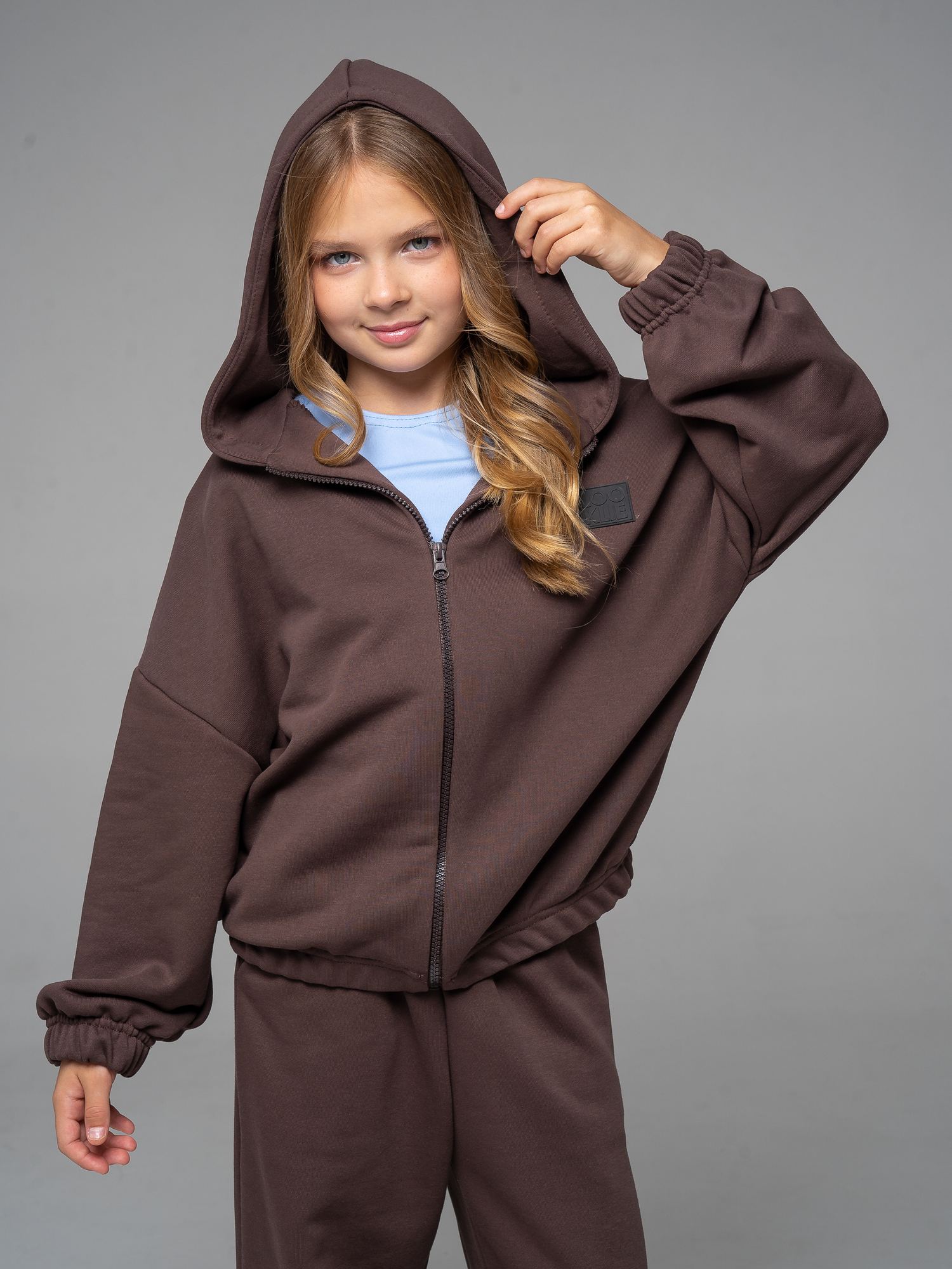 Спортивный костюм из футера(3х нитка) коричневого цвета для девочки свободного силуэта - идеальный выбор для активного отдыха и занятий спортом!