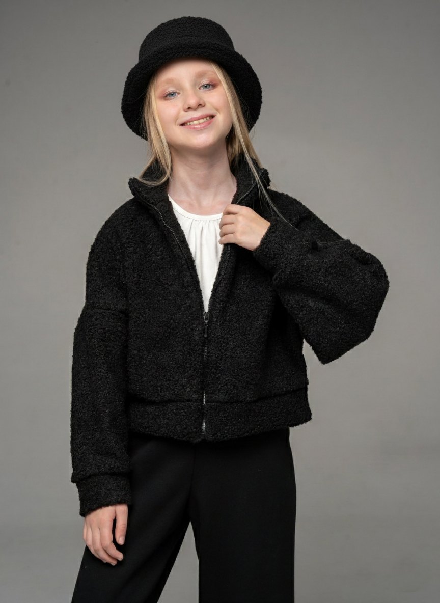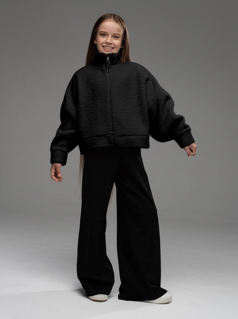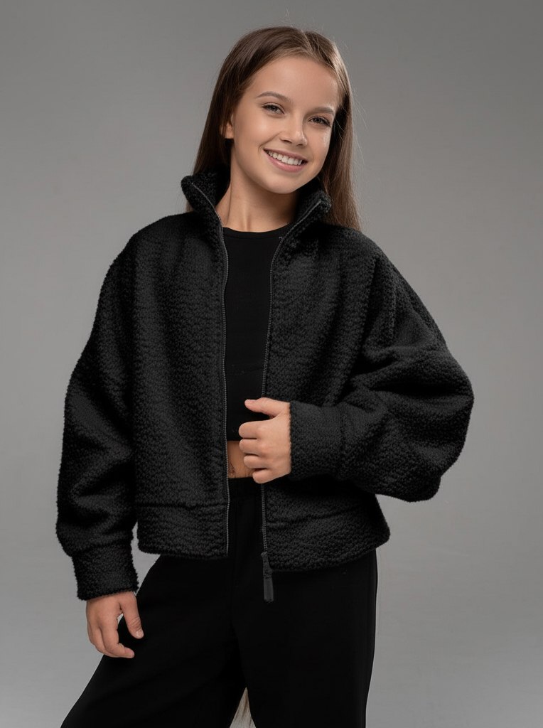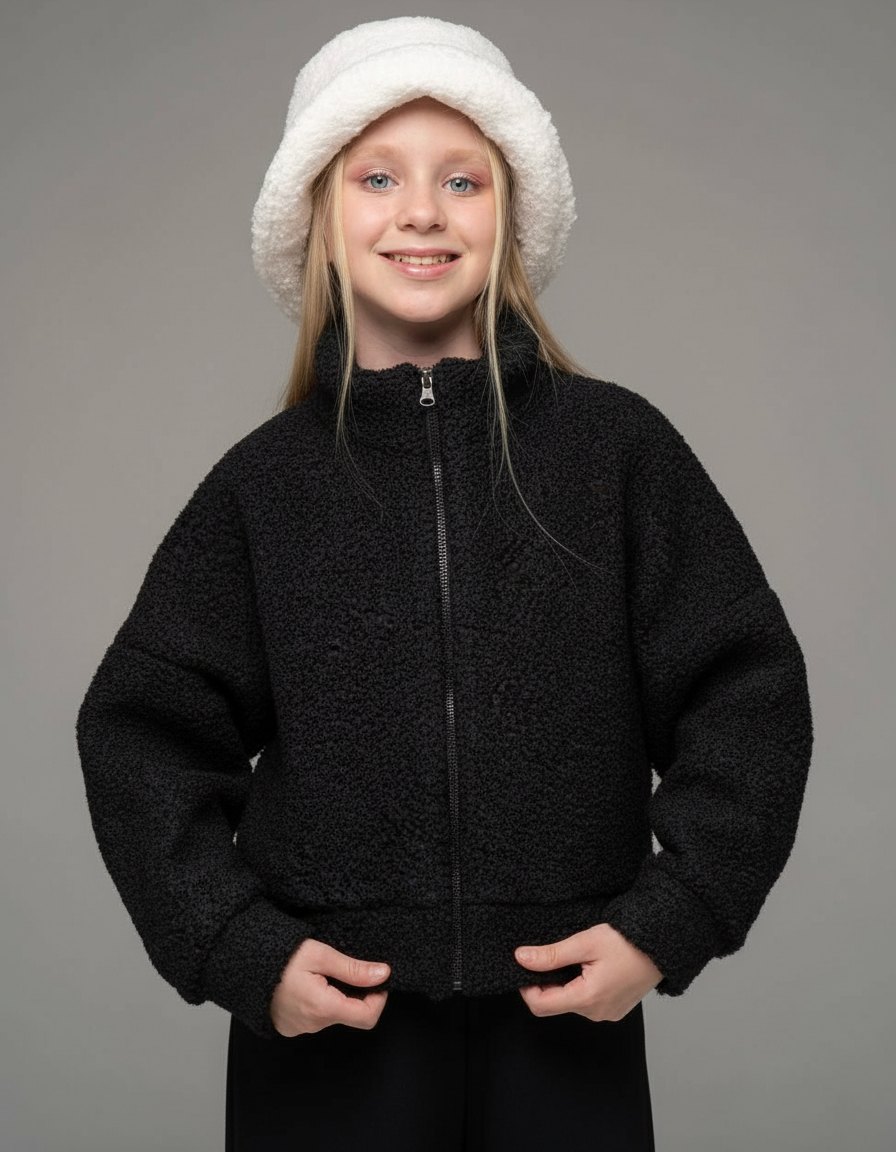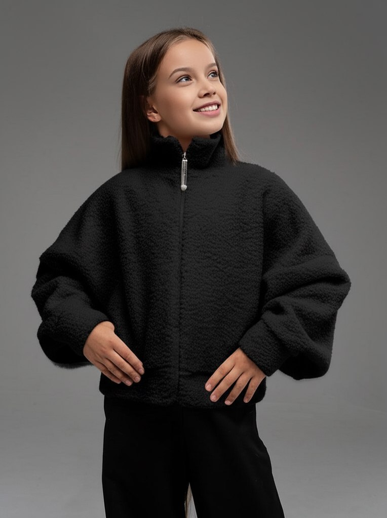 Укороченная плюшевая толстовка из шерпа черного цвета для девочки с длинными рукавами от российского производителя "Looklie" - стильная уютная вещь гардероба для каждой девочки. Кофта тедди выполнена из шерпы премиального качества. Детская толстовка свободного силуэта очень мягкая, теплая и приятная к телу. Трендовая кофта для девочки имеет объмные рукава и воротник-стойку. Укороченная толстовка тедди для девочки — тренд 2024. Застежка молния позволяет легко надевать и снимать кофту, а также регулировать температуру внутри. Кофта детская плюшевая идеально подходит для прогулок, отдыха и повседневной носки. Качество ткани, а также бережный уход (рекомендована бережная стирка при температуре до 30 градусов) обеспечивает длительный срок службы кофты, материал не растягивается и не выцветает.
