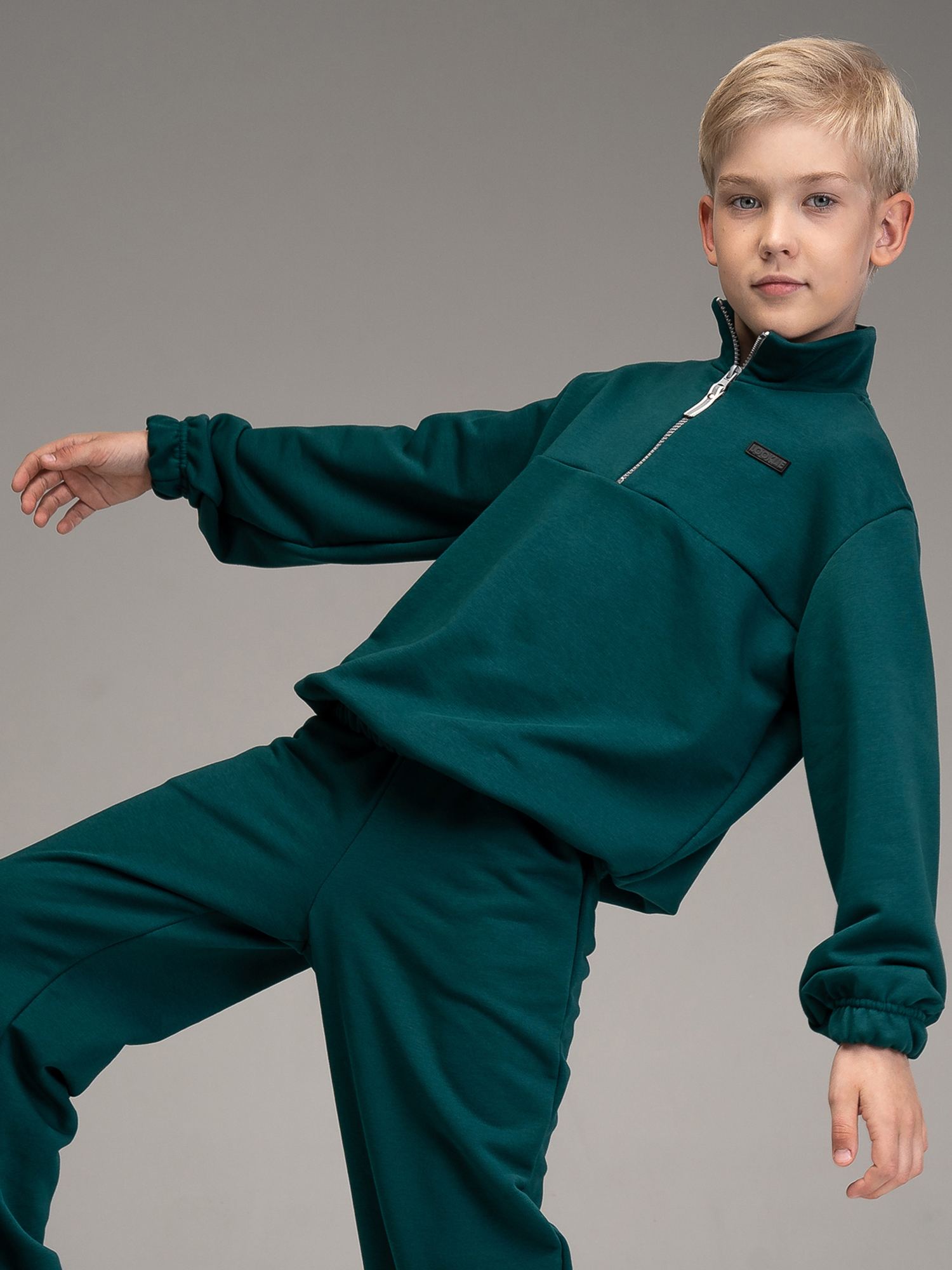 Теплая толстовка из футера(3х нитка) изумрудного цвета в стиле "спорт-шик". Модель свободного силуэта и длинными рукавами.. По низу рукавов вставлена резинка.