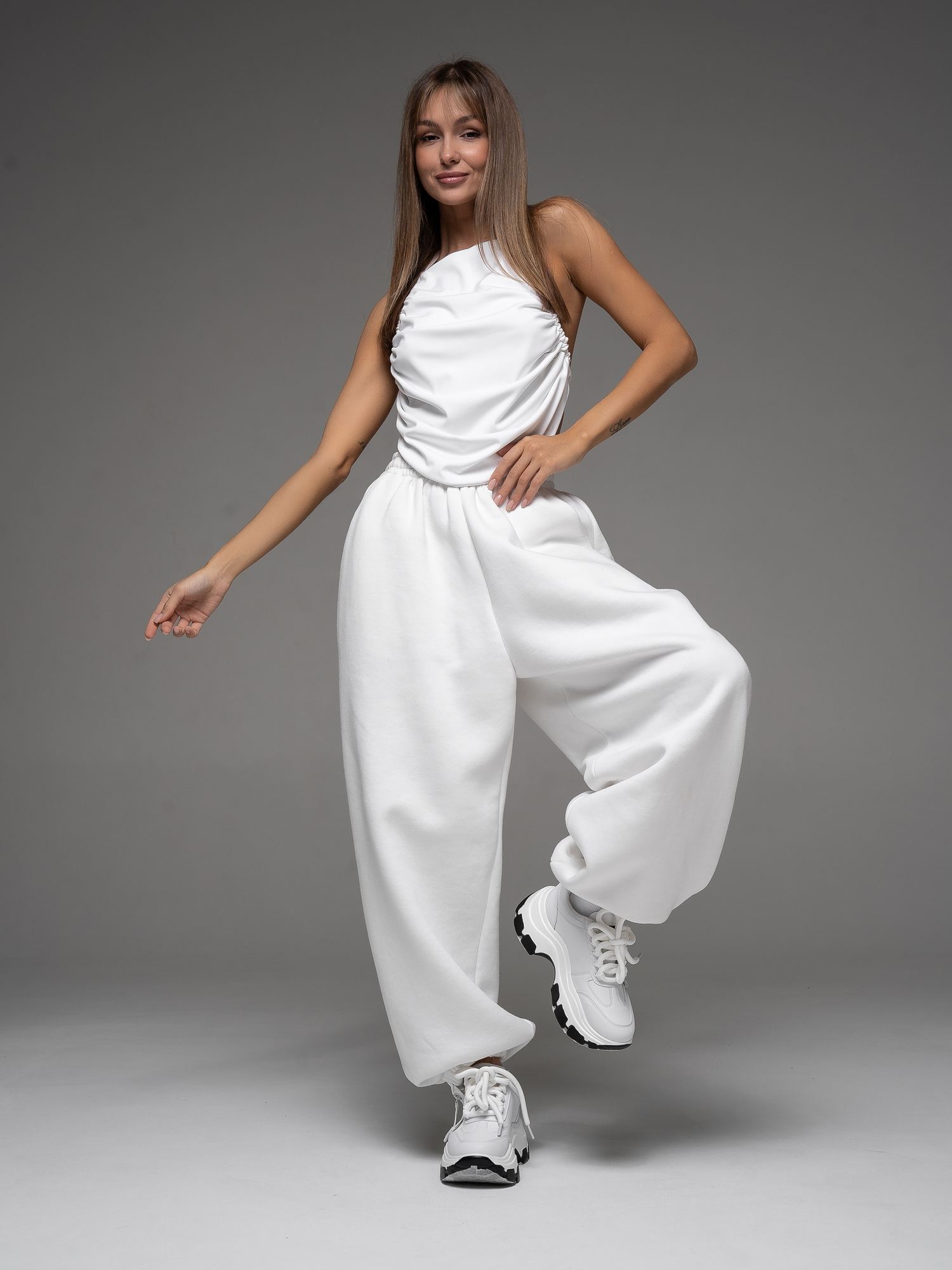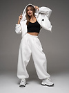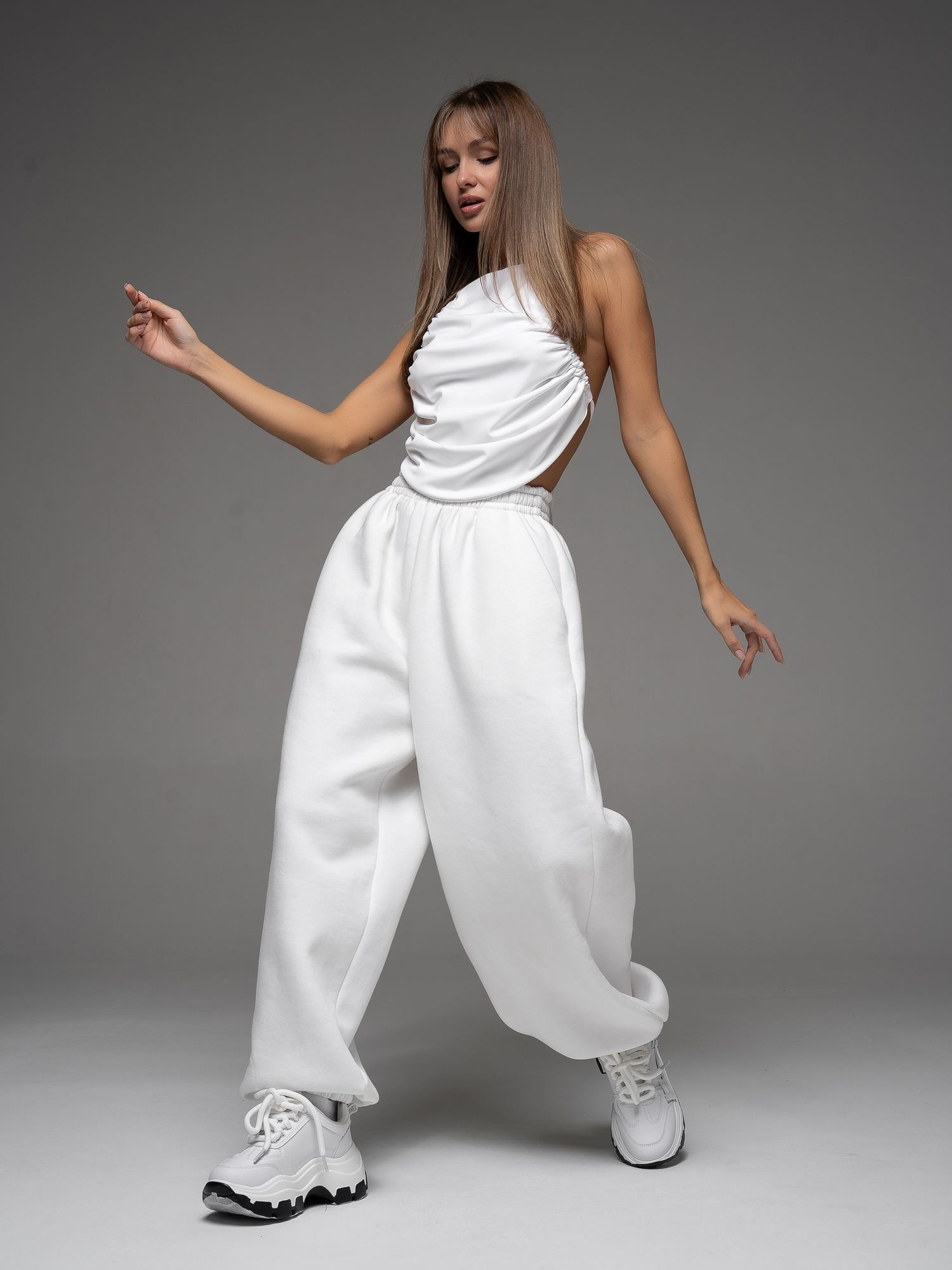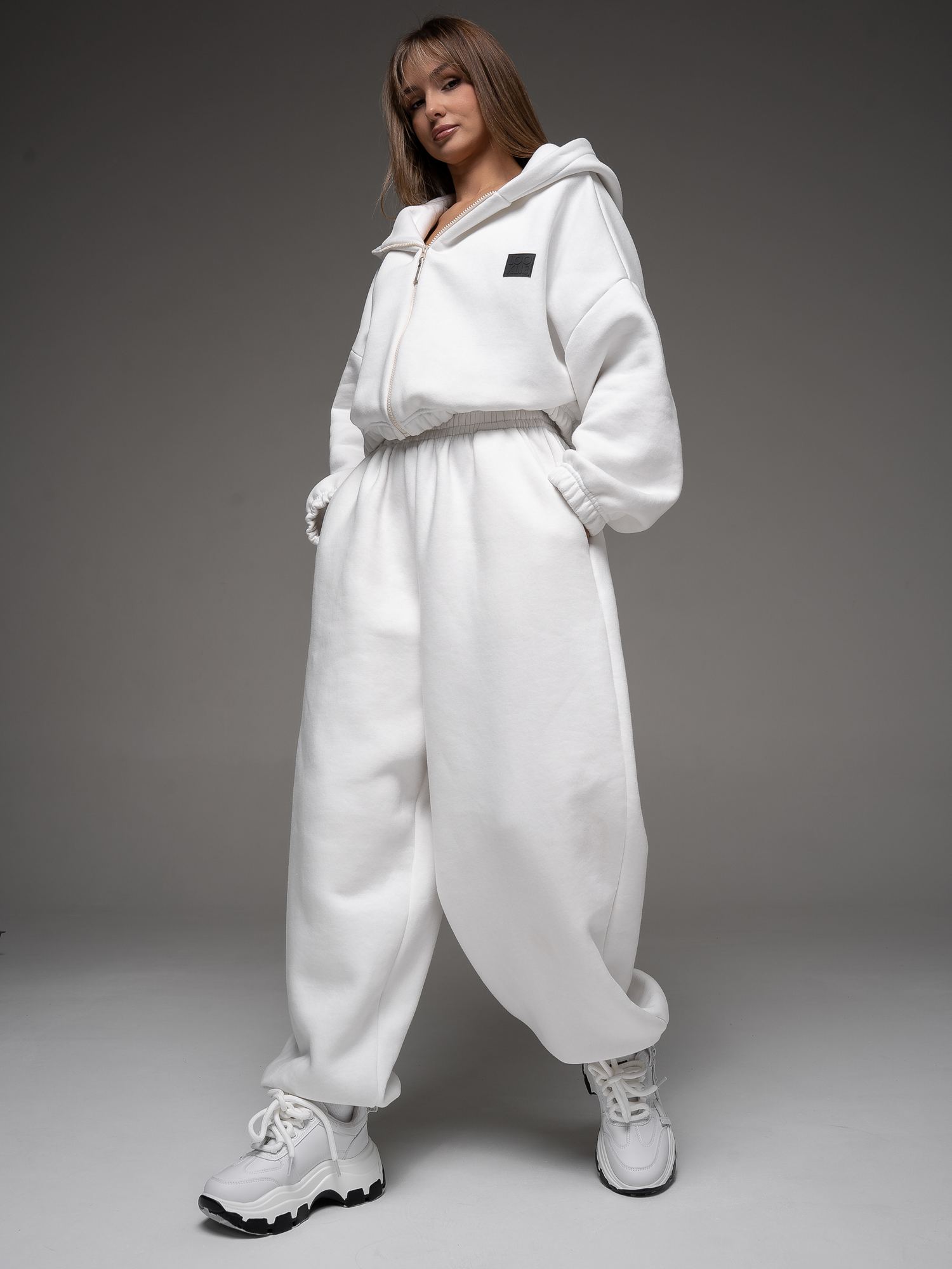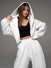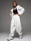 Женский костюм с начесом,с стиле "Спорт-шик" состоящий из брюк и кофты с капюшоном на молнии. Толстовка укороченная на молнии свободного силуэта с капюшоном и длинными рукавами. Низ рукавов и толстовки- на резинке. Брюки свободного силуэта с боковыми карманами, по талии и низу изделия- резинка. Универсальный спортивный костюм женский для повседневной жизни, выполнен из хлопкового футера с начесом- ткань средней плотности, подойдет на весну и осень, (демисезон) и зиму. Наш трикотажный брючный костюм подойдет для прогулок и занятий спортом. Спортивный комплект послужит прекрасным вариантом для прогулок и походов. Хлопковая свободная двойка прекрасно смотрится на девушках разного типа фигуры и благодаря свободной кофте оверсайз подойдет и беременным девушкам. Повседневный трикотажный комплект прекрасно впишется в любой гардероб, т.к. штаны и кофту можно сочетать с любыми вещами из гардероба! Кофту на молнии и спортивки можно носить по отдельности, сочетая их с различными элементами спортивной и повседневной одежды. Плотное трикотажное полотно футер с начесом, гладкое снаружи, изнутри - мягкое и приятное. В состав хлопковой ткани для эластичности и износостойкости добавлен полиэстер. Он универсален! И в поездке или путешествии будет незаменимым вариантом как на улицу, так и в спортзал. Наша стильная спортивная новинка станет удачным подарком подруге, сестре или любимой девушке на день рождения и любой другой праздник. Изделие выполнено из трикотажа премиального качества - ПЕНЬЕ, с содержанием хлопка более 80%
