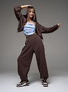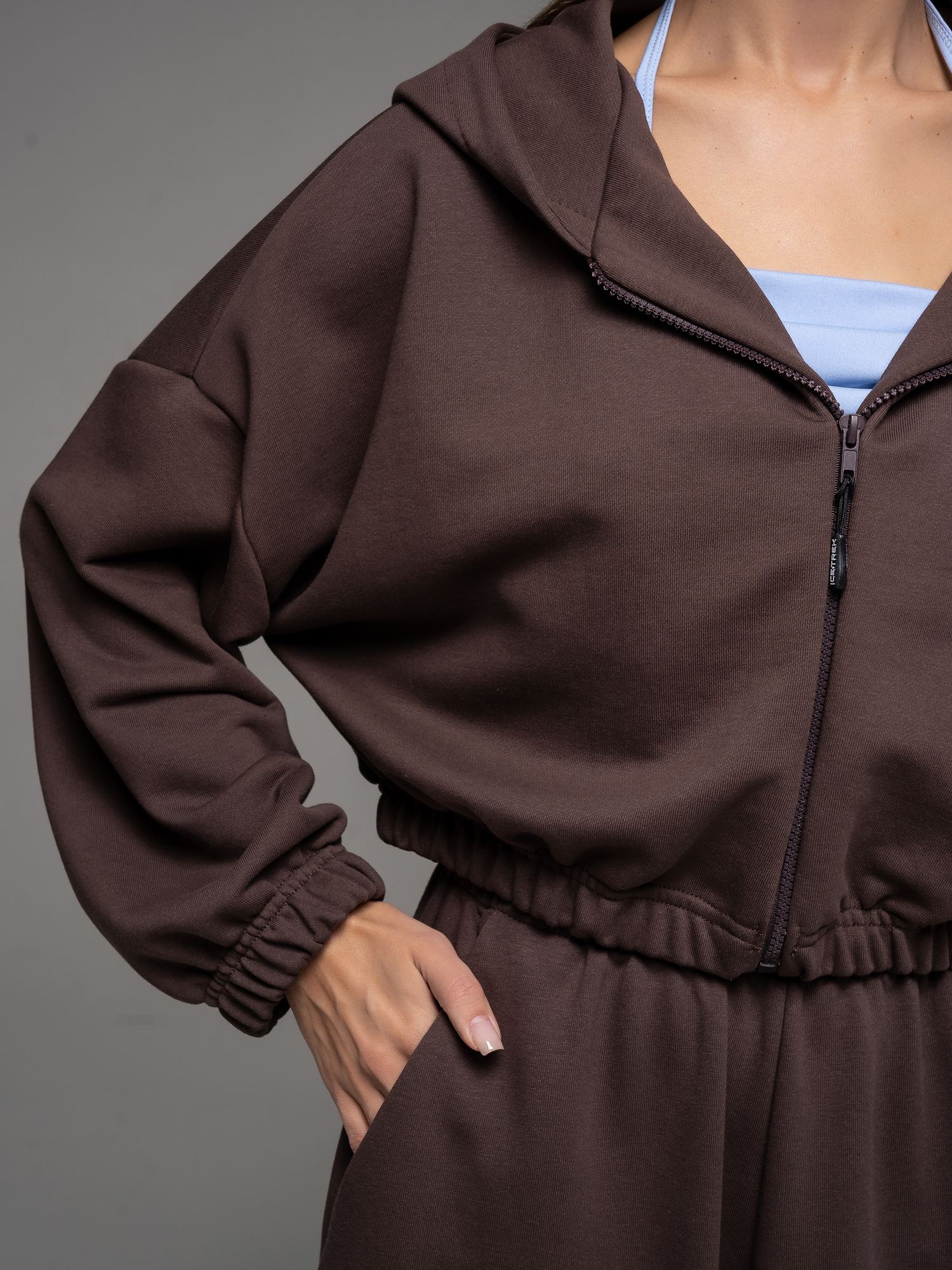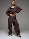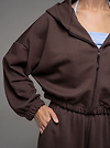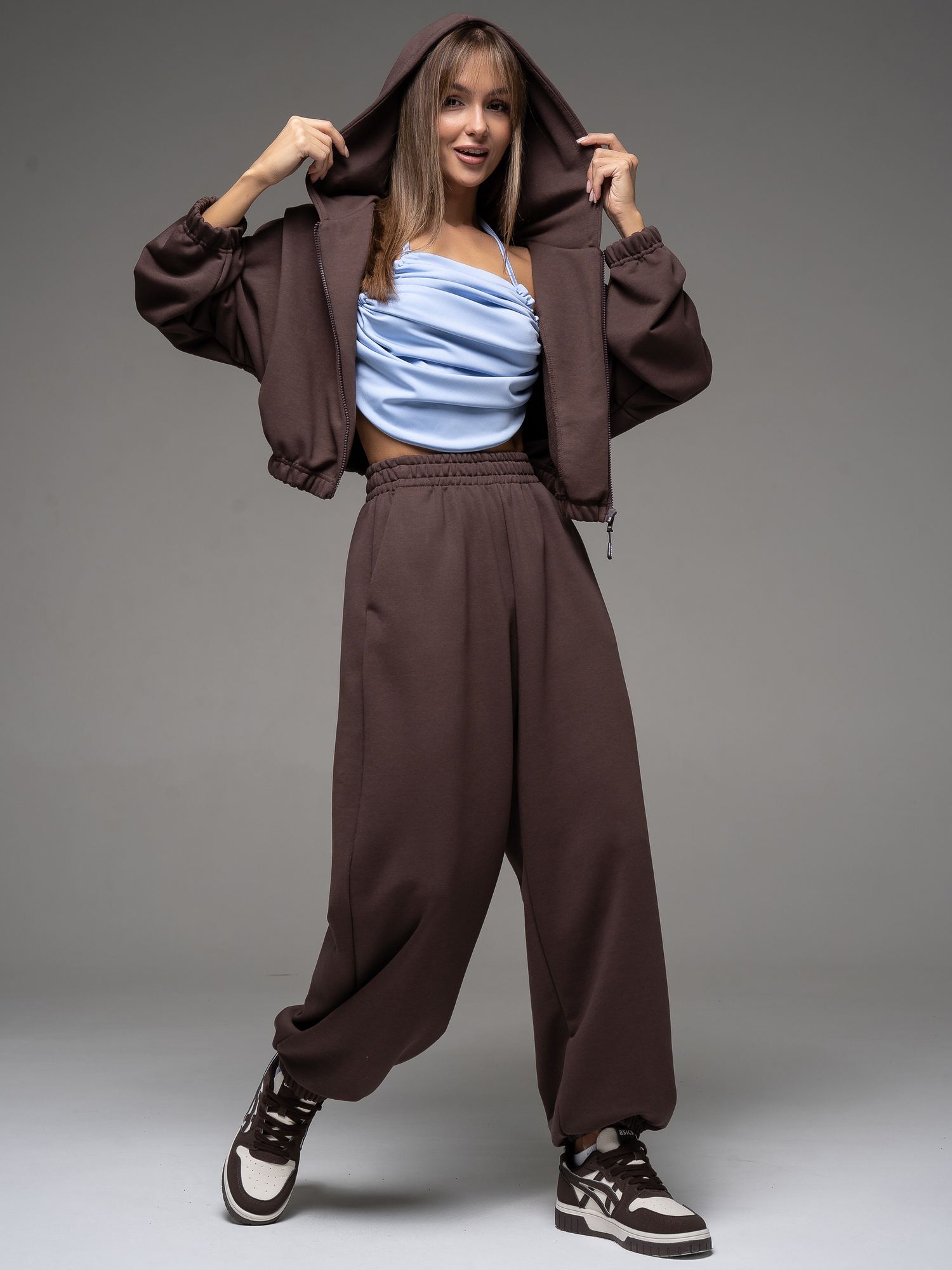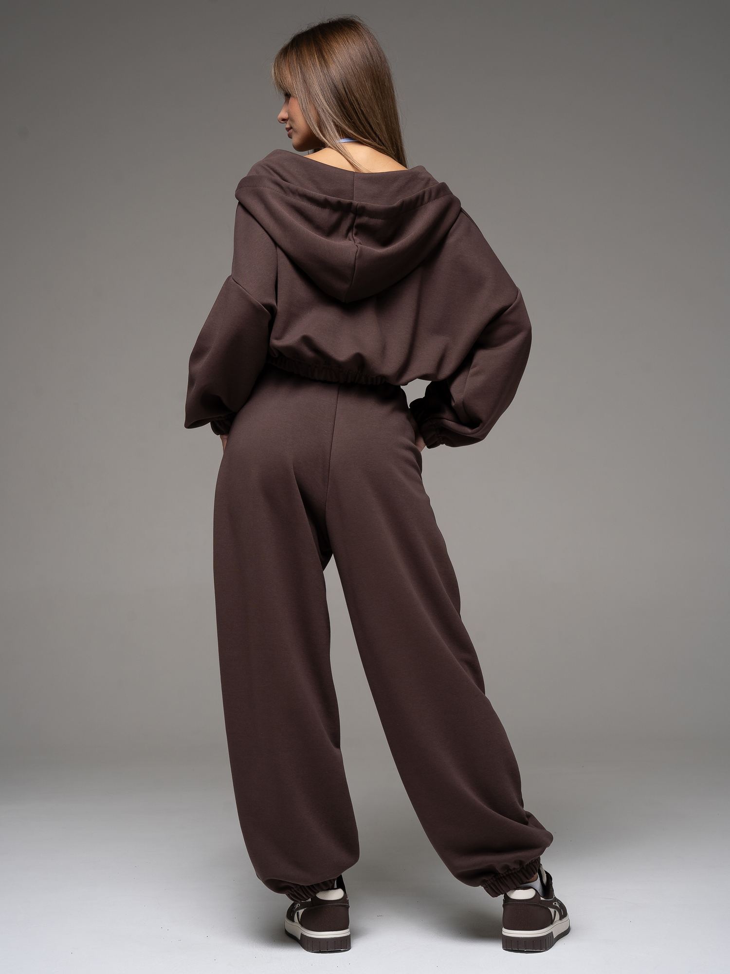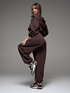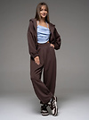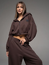 Женский костюм из футера(3х нитка) коричневого цвета без начеса,с стиле "Спорт-шик" состоящий из брюк и кофты с капюшоном на молнии. Толстовка укороченная на молнии свободного силуэта с капюшоном и длинными рукавами. Низ рукавов и толстовки- на резинке. Брюки свободного силуэта с боковыми карманами, по талии и низу изделия- резинка. Универсальный спортивный костюм женский для повседневной жизни, выполнен из хлопкового футера 3х нитки (без начеса)- ткань средней плотности, подойдет на весну и осень, (демисезон) и прохладное лето. Наш трикотажный брючный костюм подойдет для занятий спортом, фитнеса, пилатеса, танцев и йоги. Так же в качестве спортивной формы для занятия спортом. Спортивный комплект послужит прекрасным вариантом для прогулок и походов. Хлопковая свободная двойка прекрасно смотрится на девушках разного типа фигуры и благодаря свободной кофте оверсайз подойдет и беременным девушкам. Повседневный трикотажный комплект прекрасно впишется в любой гардероб, т.к. штаны и кофту можно сочетать с любыми вещами из гардероба! Кофту на молнии и спортивки можно носить по отдельности, сочетая их с различными элементами спортивной и повседневной одежды. Плотное трикотажное полотно футер 3-х нитка без начеса, гладкое снаружи, изнутри - мягкое и приятное. В состав хлопковой ткани для эластичности и износостойкости добавлен полиэстер. Он универсален! И в поездке или путешествии будет незаменимым вариантом как на улицу, так и в спортзал. Наша стильная спортивная новинка станет удачным подарком подруге, сестре или любимой девушке на день рождения и любой другой праздник.
