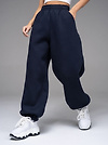 Женские брюки из футера с начесом бежевого цвета свободного силуэта с широким цельнокроенным поясом и боковыми карманами. По низу брюк - резинка. Изделие выполнено из трикотажа премиального качества - ПЕНЬЕ, с содержанием хлопка более 80%