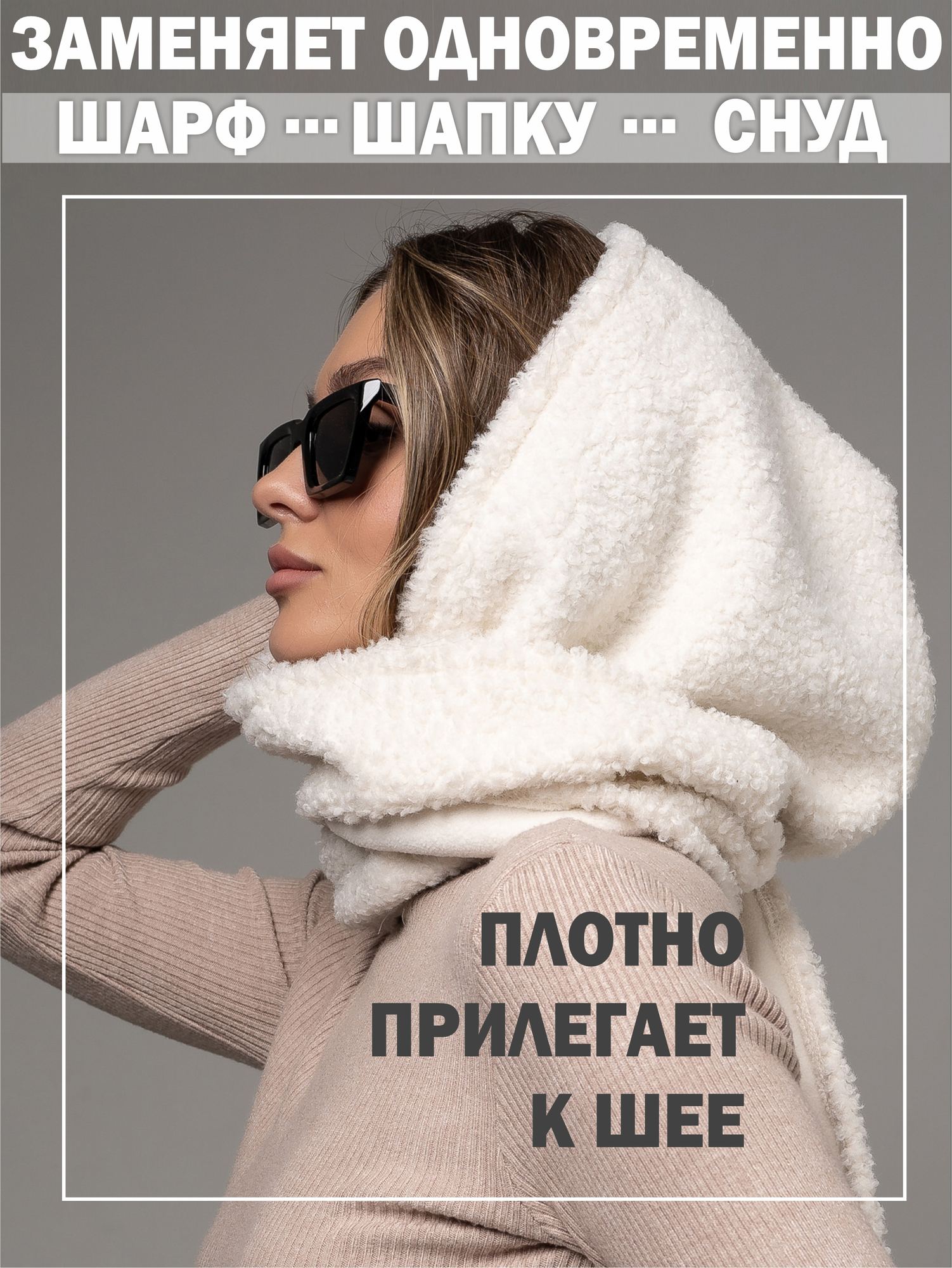 Капор - платок женский из шерпа молочного цвета - тренд сезона. Имеет 2 варианта ношения: можно зафиксировать спереди на петличку, либо завязать как платок. Это универсальный головной убор, который сочетается с любой верхней одеждой, создавая стильный образ. Это отличная замена шапке, платку и шарфу, надежно закрывает шею и грудь от холодного воздуха. Плюшевый теплый капор из шерпы - идеален для длительных прогулок на свежем воздухе, путешествий, занятий спортом. В нем можно каждый день ходить на работу в офис, на учебу в школу или в институт. Не имеет ограничений по возрасту, подходит как взрослым, так и подросткам для повседневного, спортивного, городского, молодежного стиля. Капор можно взять с собой и надеть в случае непогоды весной и осенью."